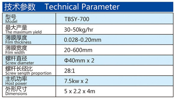 吹制各種規格的低密度聚乙烯、高密度聚乙烯和線性低密度聚乙烯塑料薄膜,廣泛應用于食品百貨、日用、化工、針紡品、購物禮袋和工業包裝。機筒、螺桿采用38CrMoAl合金材料經氮化處理精密加工而成,具有很好的耐磨和耐腐蝕性。